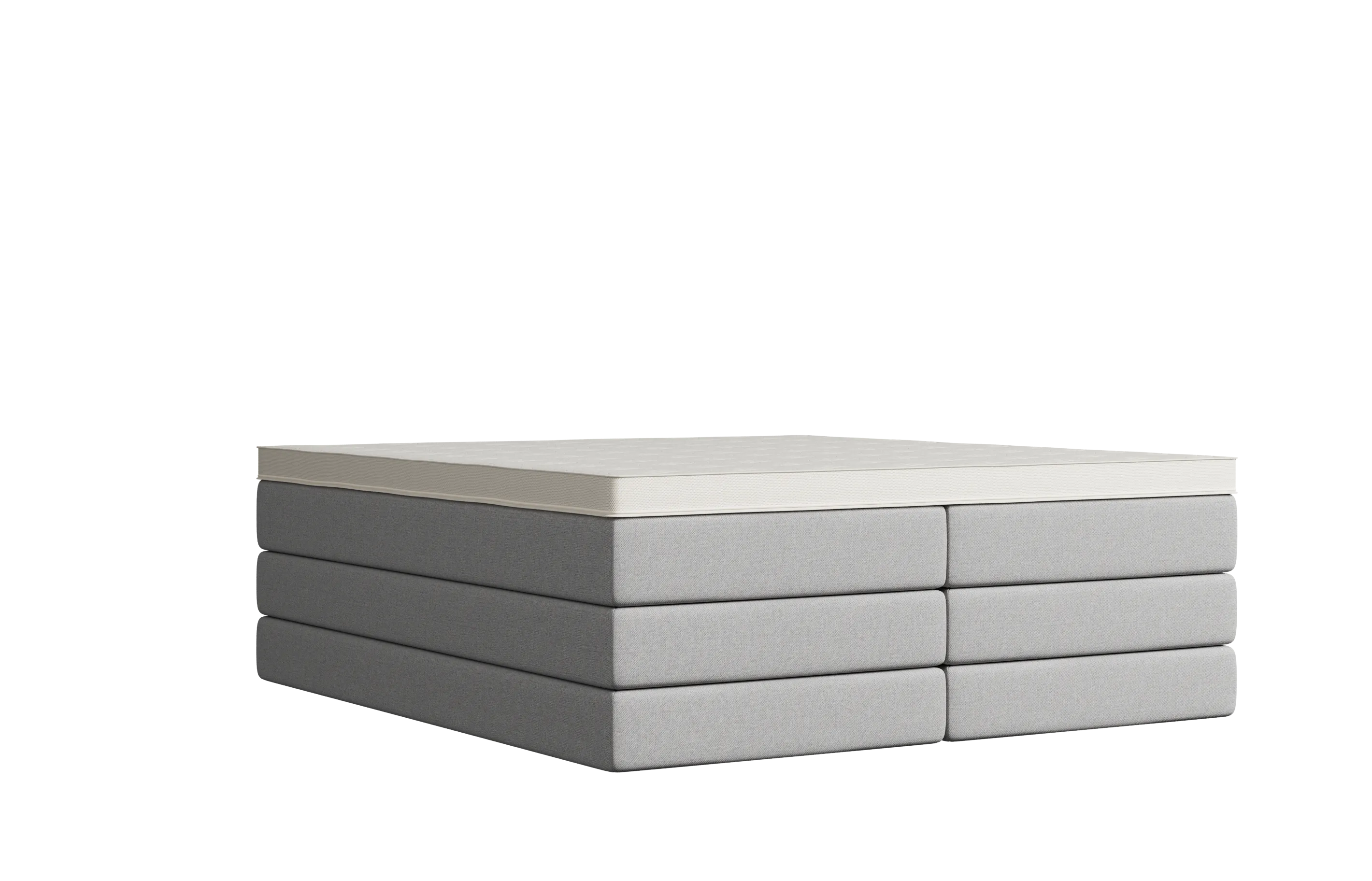 Selber Komfort, anderes Design: Das Bett erhältst du optional mit einem Topper, der in die Matratze integriert ist. Schäume und Federkerne sind identisch wie bei der Variante mit aufliegendem Topper. Optisch ist die Matratze nicht mit Textil, sondern mit einem weißen Doppeltuch bezogen.