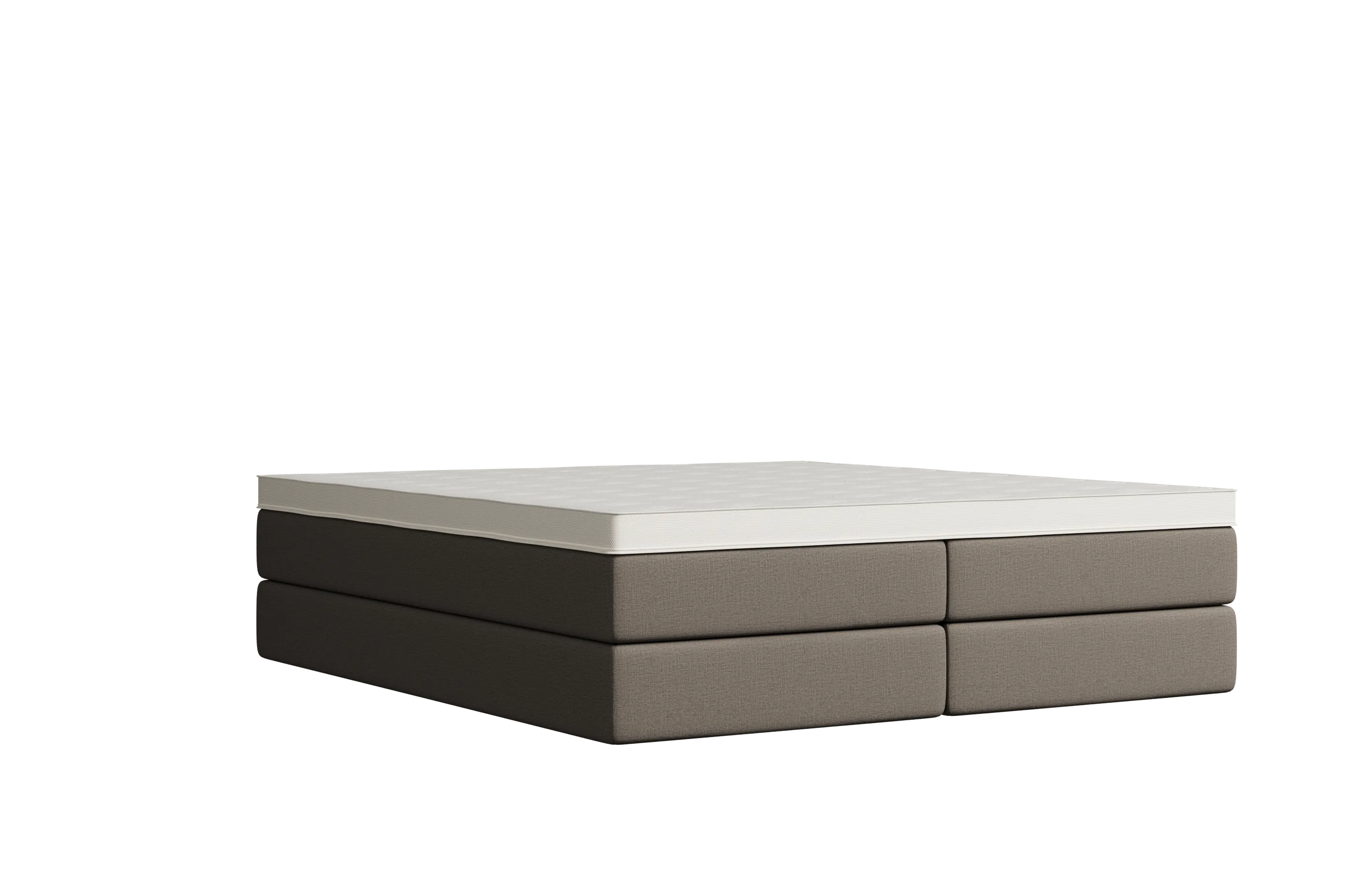 Selber Komfort, anderes Design: Das Bett erhältst du optional mit einem Topper, der in die Matratze integriert ist. Schäume und Federkerne sind identisch wie bei der Variante mit aufliegendem Topper. Optisch ist die Matratze nicht mit Textil, sondern mit einem weißen Doppeltuch bezogen.