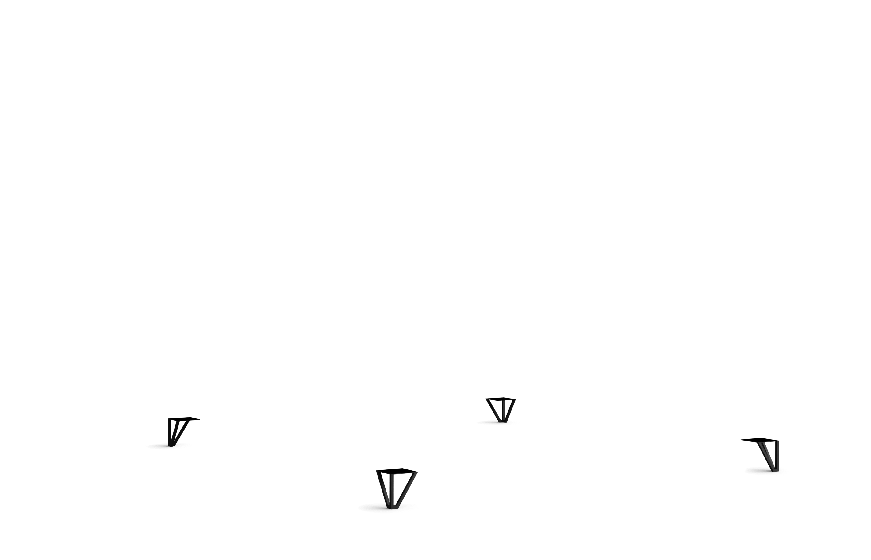 Rundfuß: 5x Rundfuß pro Unterbox + 1x Mittelschiene; Schrägfuß: 3x Schrägfuß, 2x Mittelfuß pro Unterbox + 1x Mittelschiene; Chromfuß: 2x Chromfuß, 3x verstellbarer Mittelfuß pro Unterbox + 1x Mittelschiene