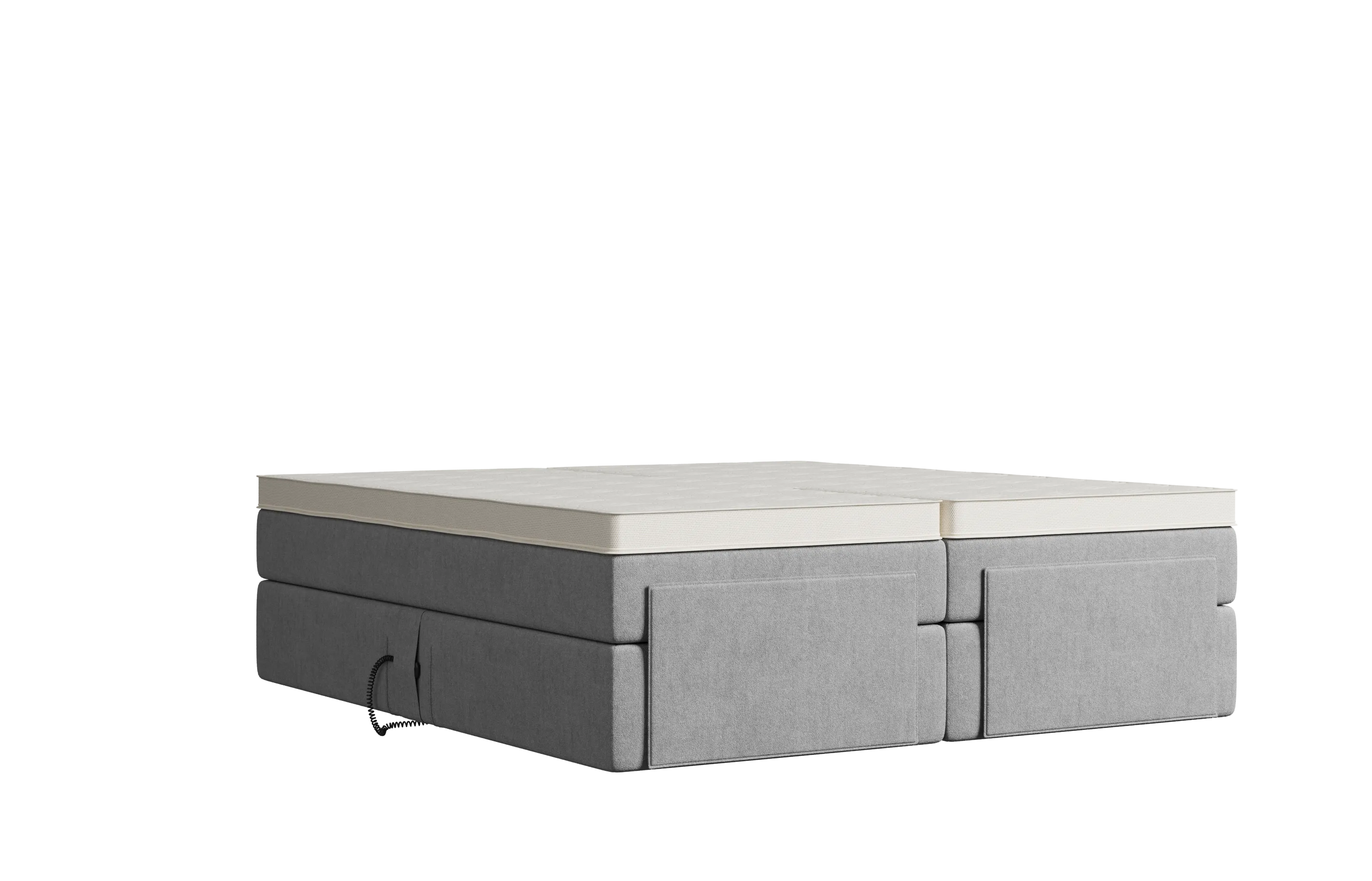 Massivholz-Unterbox mit 7-Zonen-Taschenfedersystem. Kein Knatschen oder Quietschen. Motor zum Verstellen von Kopf- und / oder Fußende mit leistungsstarken 6.000 Newton. Mit Funk-Fernbedienung.
